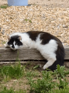 Rosie, who is actually a male cat (don’t ask), has 3 legs, is partially blind and is somehow allergic to everything, is our fair weather cat who often makes an appearance during the summer months.